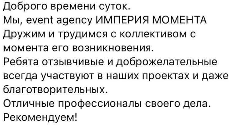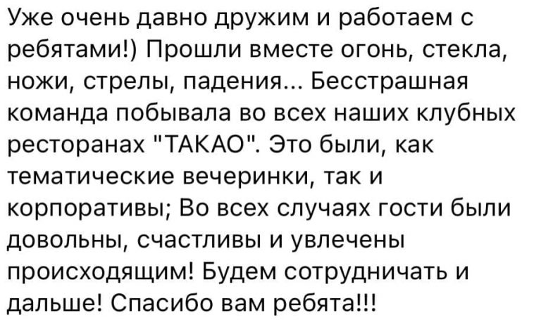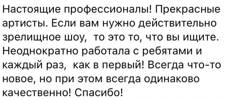 Наши артисты постоянные участники различных частных, корпоративных и городских мероприятий.